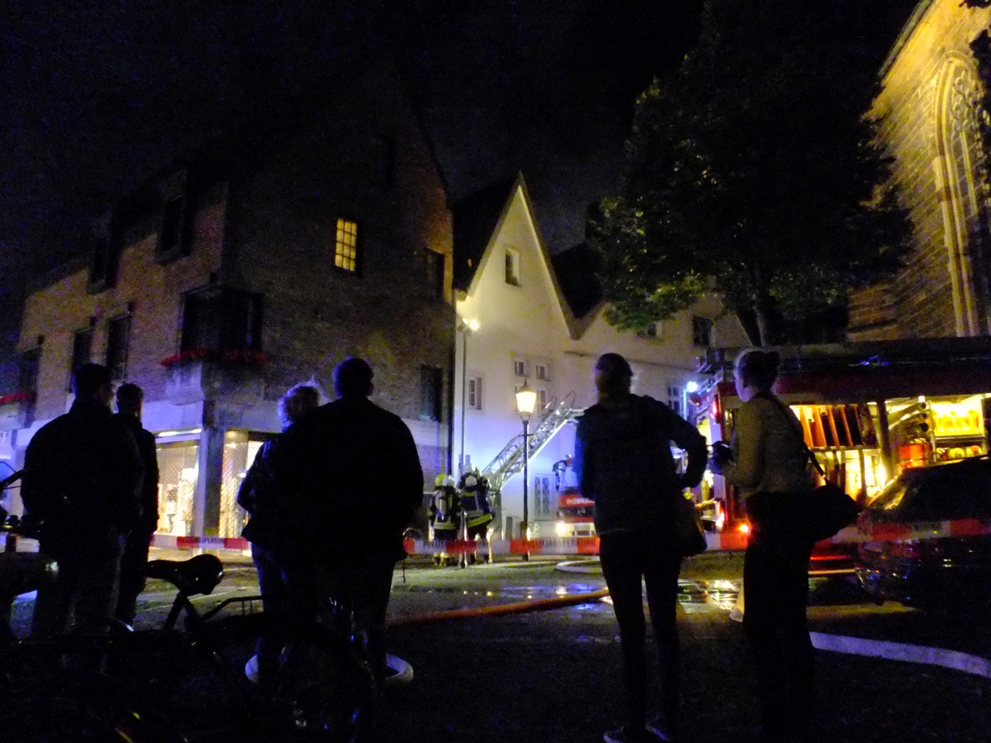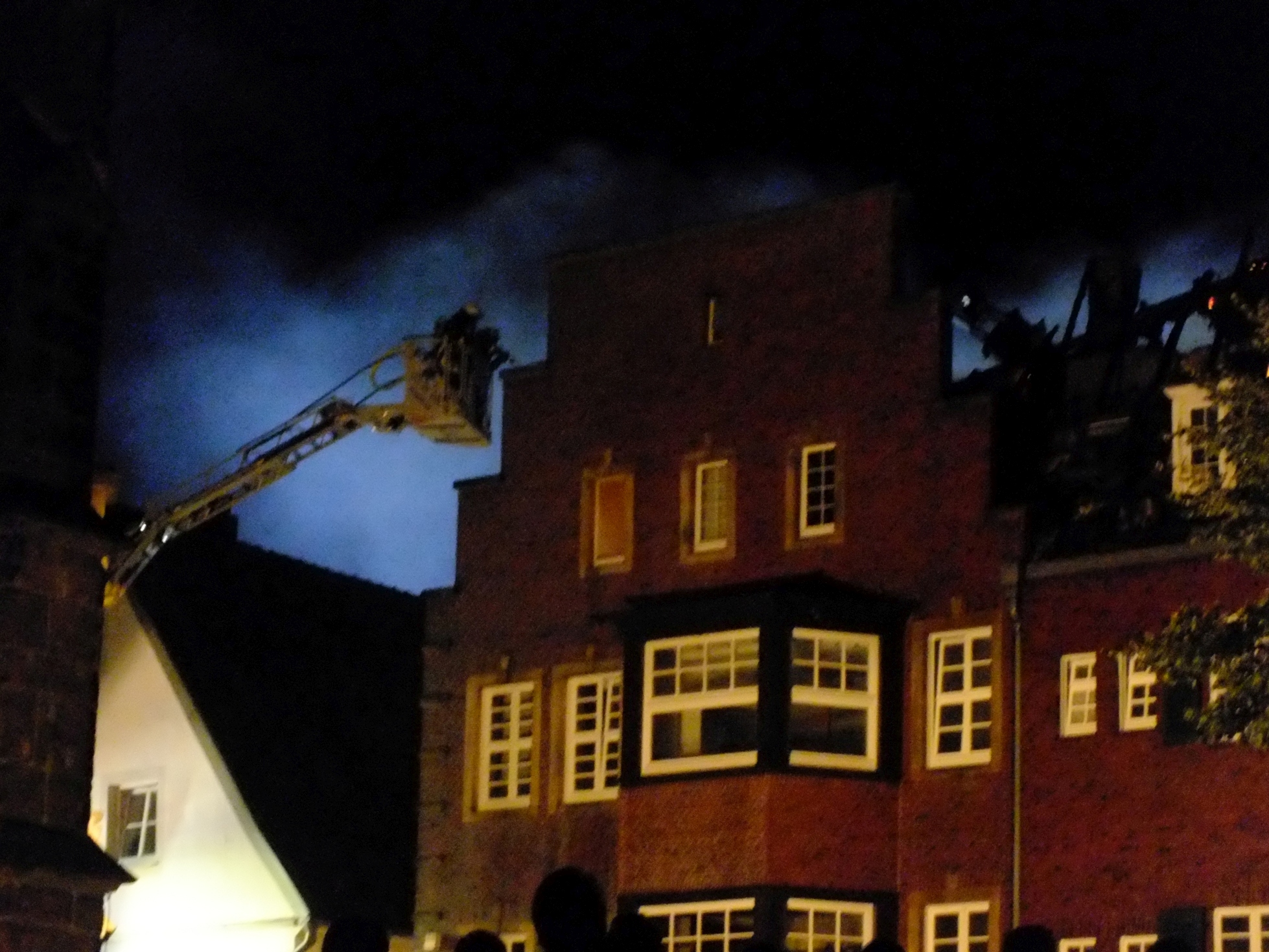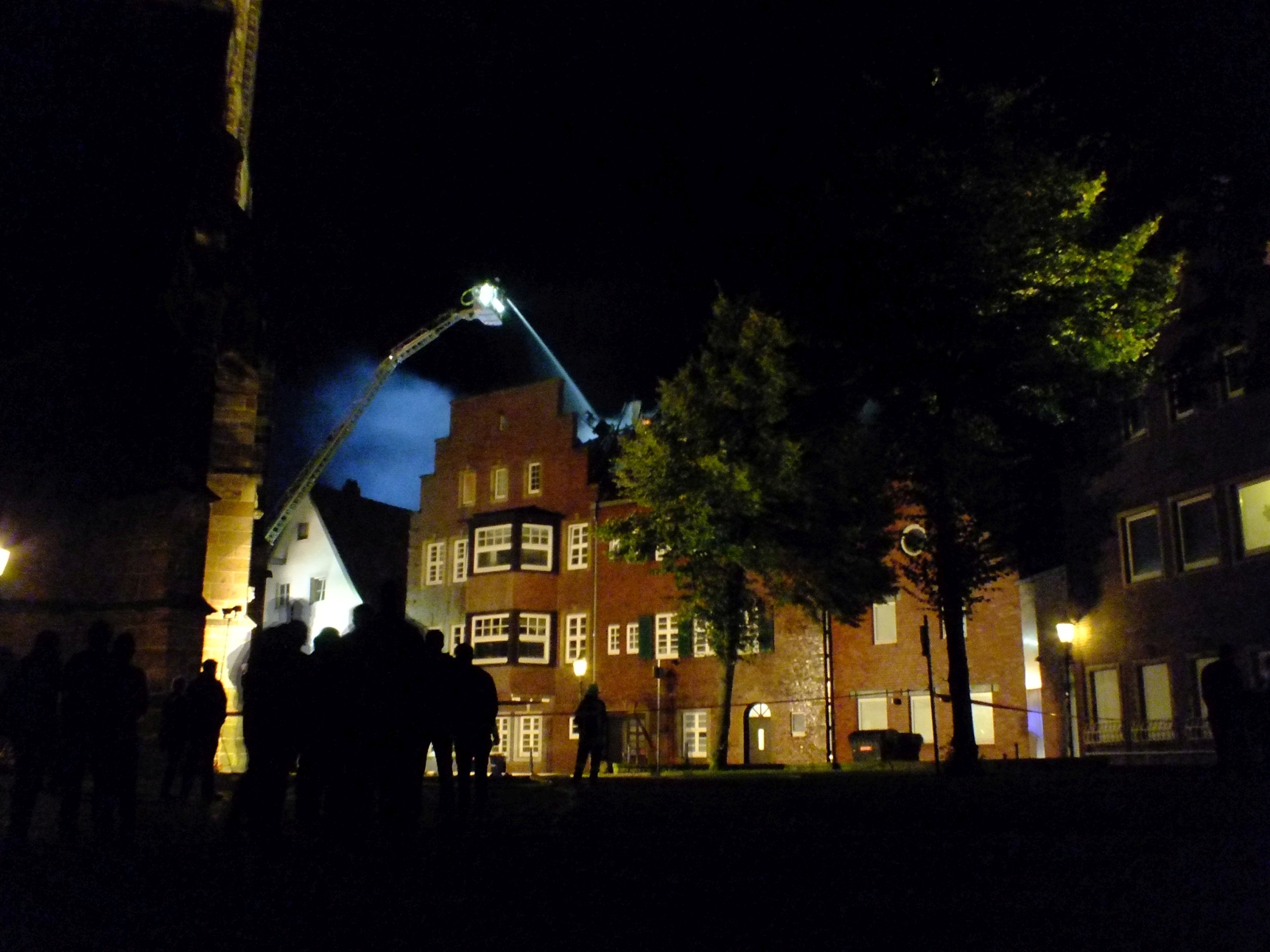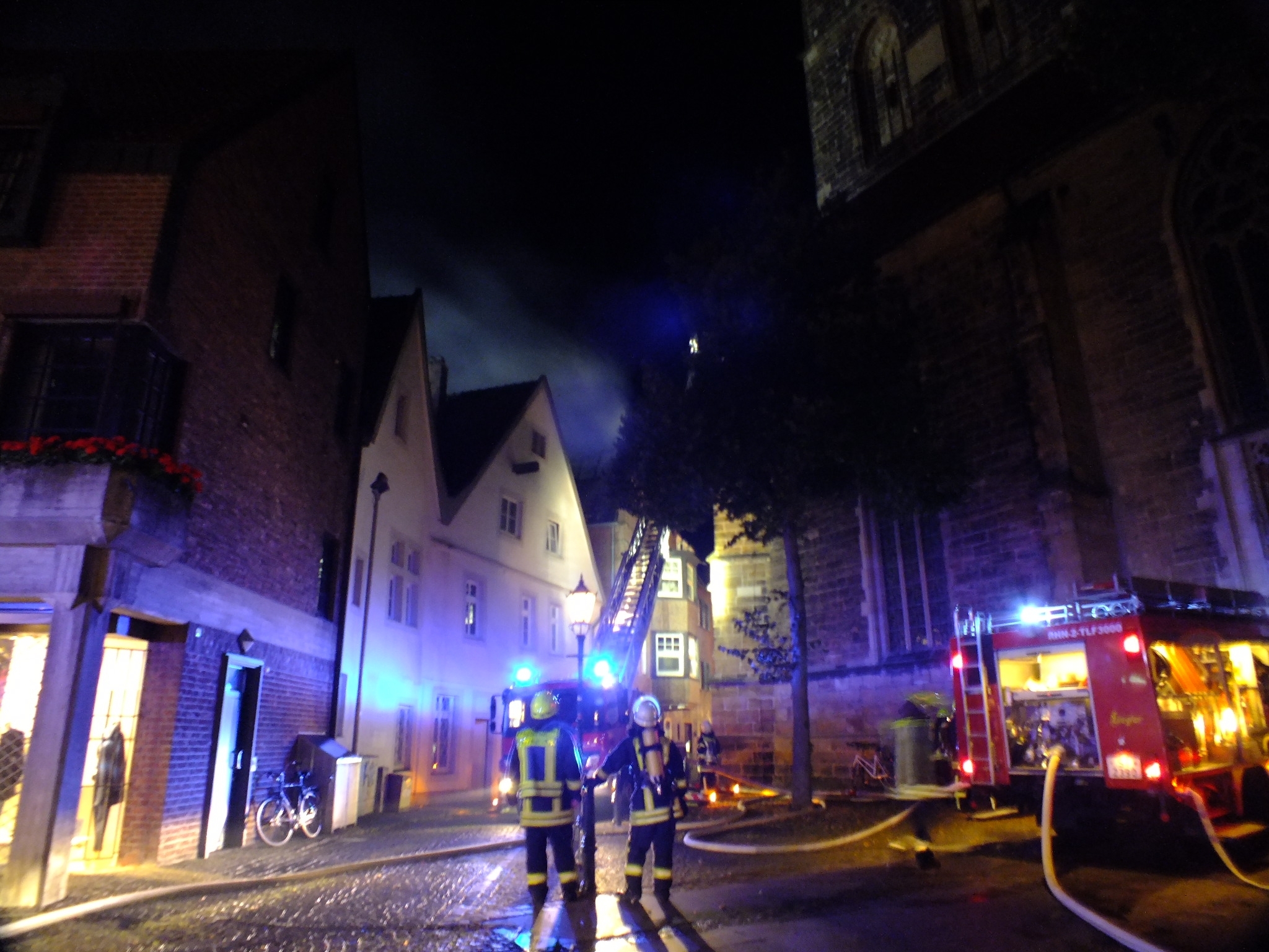 Während der Strassenparty in Rheine kam es am Samstag gegen 21.30 Uhr in der Innenstadt zu einem verheerenden Dachstuhlbrand. Das Dach der ehemalige Löwen-Apotheke, eines der historischen Denkmäler in Rheine und Apotheken-Museum, brannte lichterloh.