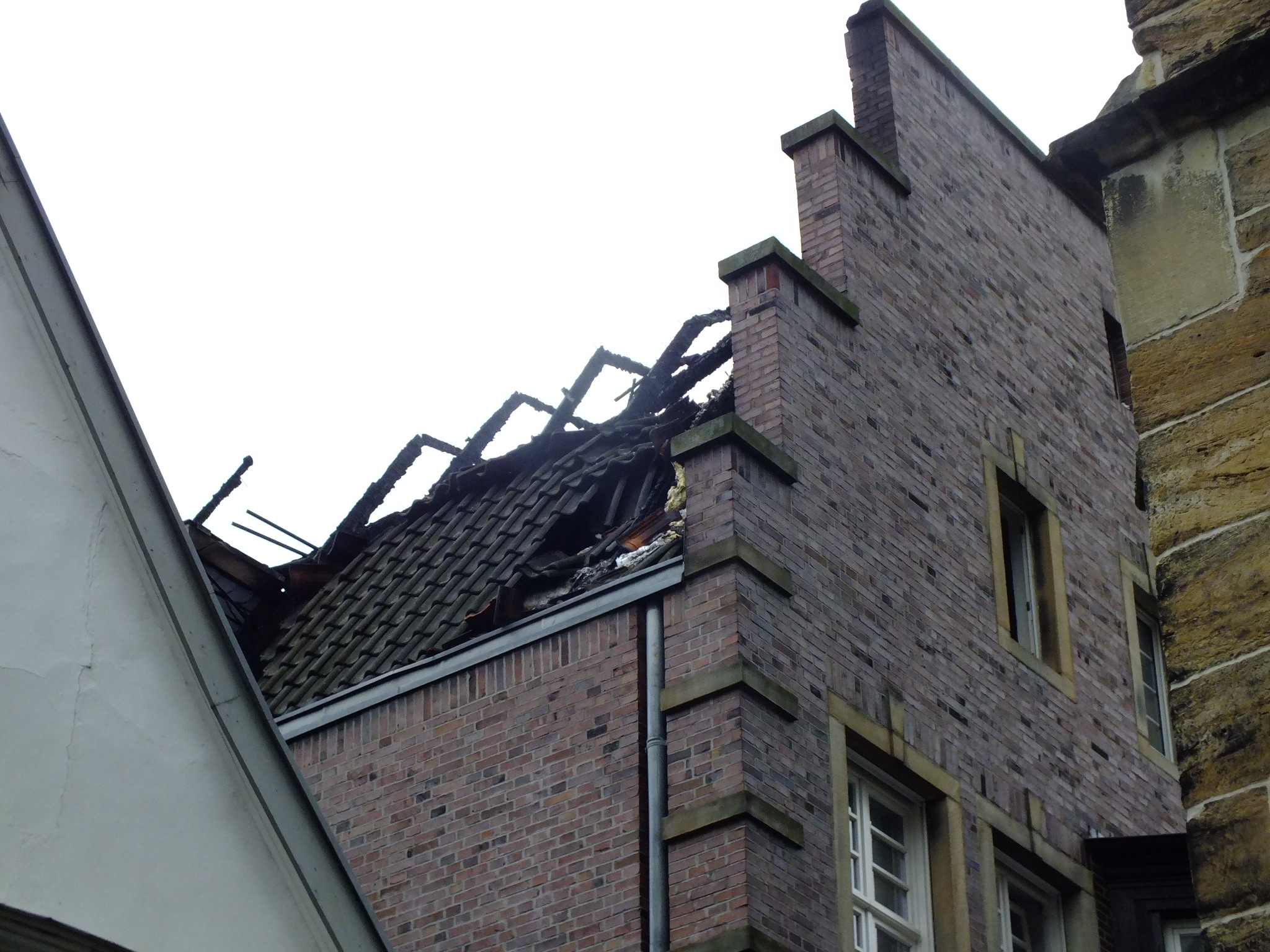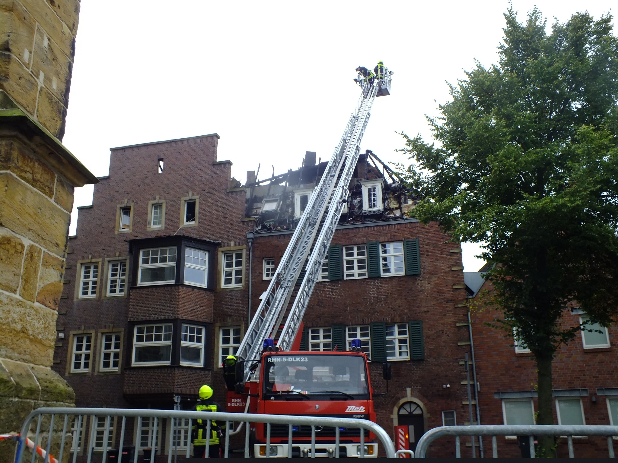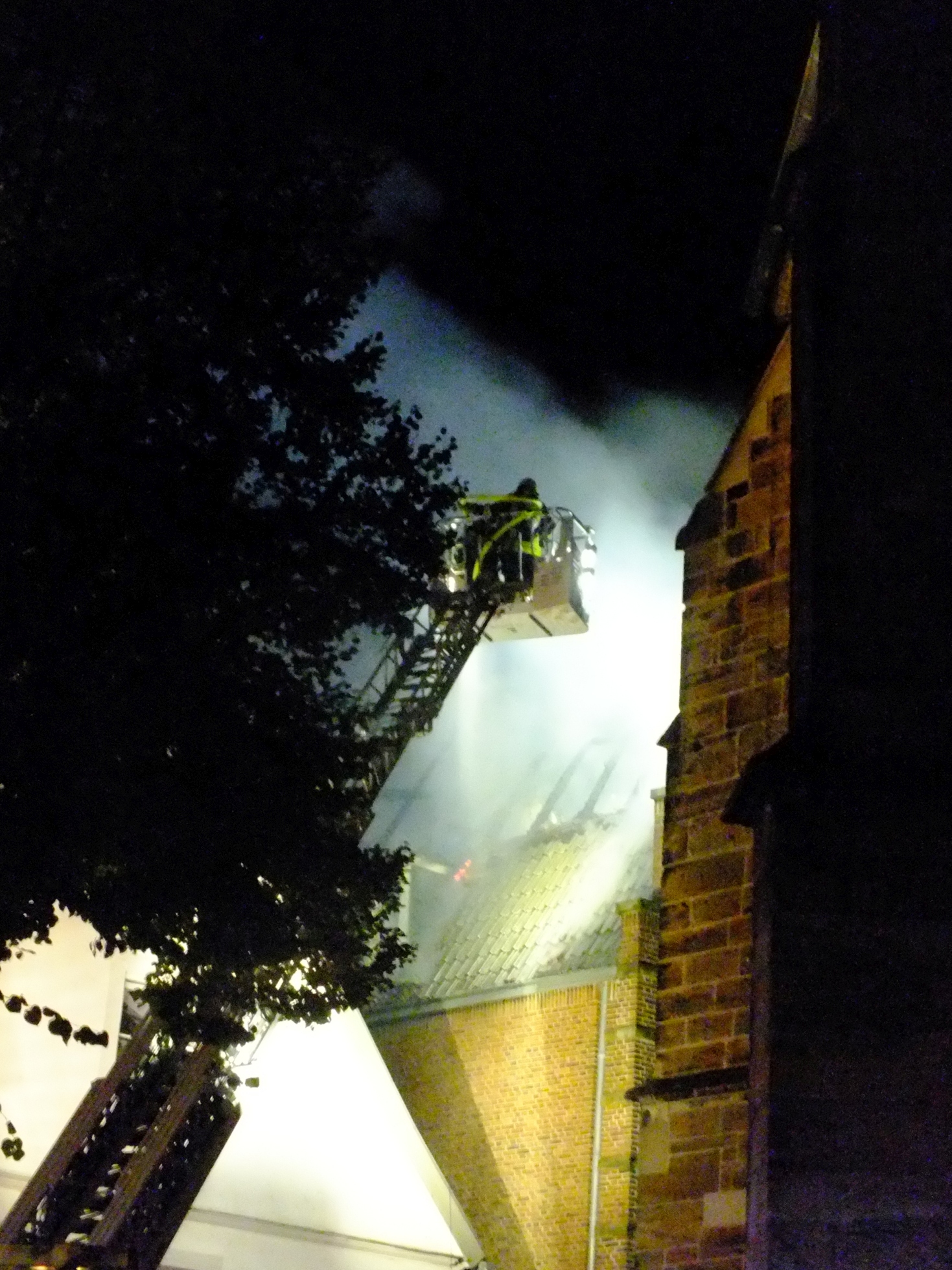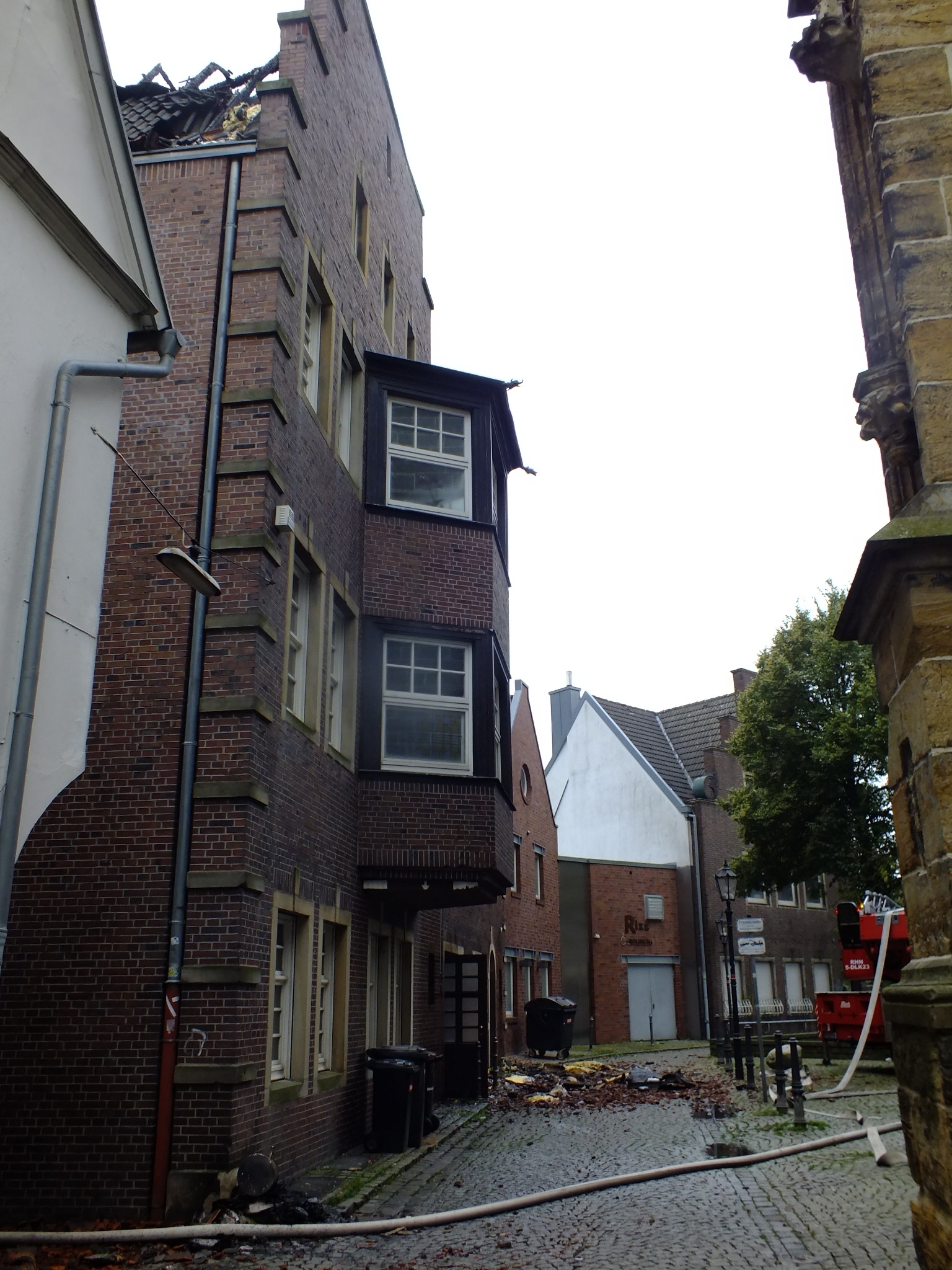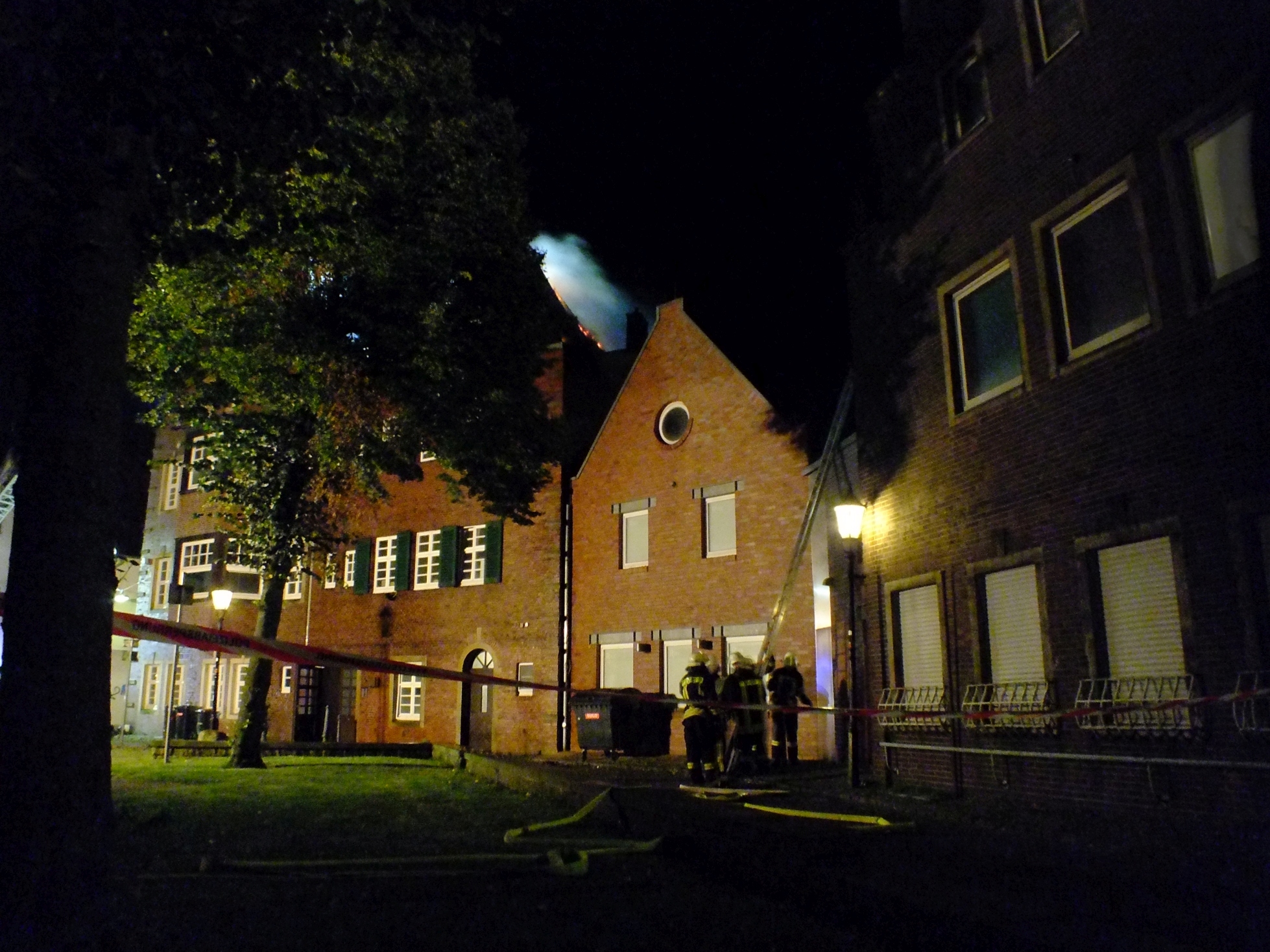 Während der Strassenparty in Rheine kam es am Samstag gegen 21.30 Uhr in der Innenstadt zu einem verheerenden Dachstuhlbrand. Das Dach der ehemalige Löwen-Apotheke, eines der historischen Denkmäler in Rheine und Apotheken-Museum, brannte lichterloh.