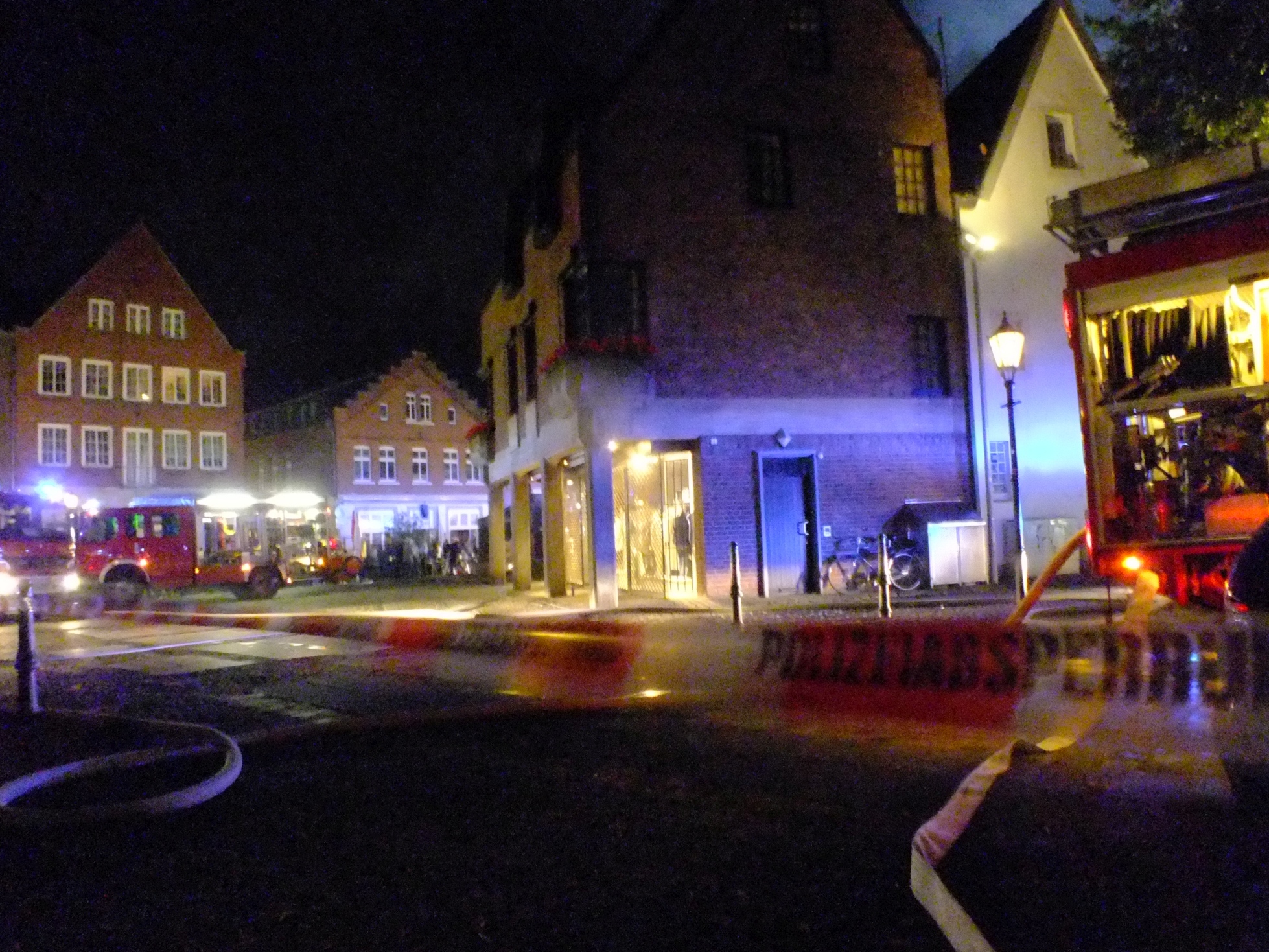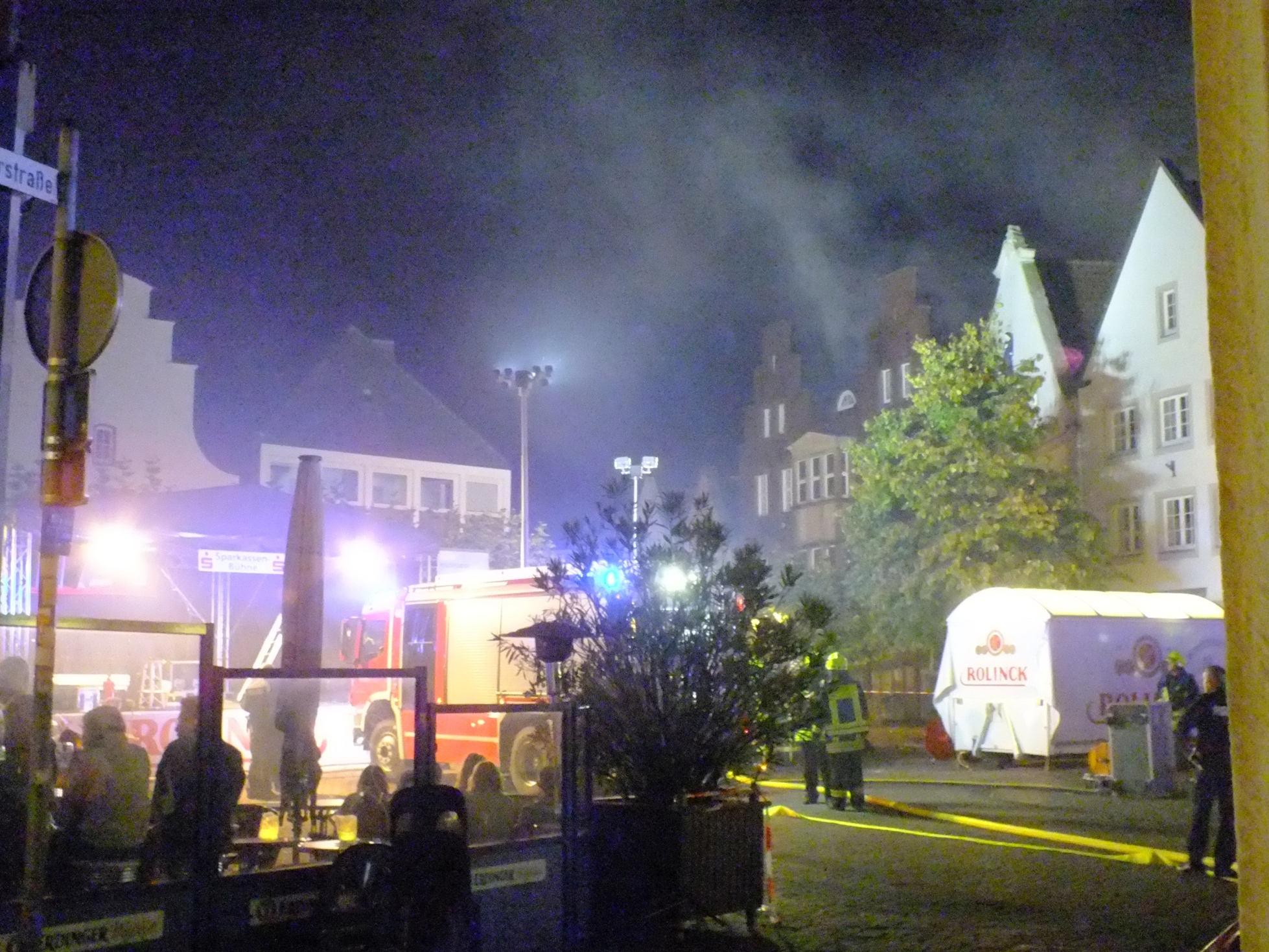 Durch die Baustelle im Bereich Marktstrasse und Thie, der Strassenparty und der Enge der Bebauung war es sicherlich nicht leicht für die Einsatzkräfte den Brandherd zu erreichen. Dennoch schaffte es die Feuerwehr ein Übergreifen der Flammen auf die angrenzenden Häuser zu verhindern und den Brand unter Kontrolle zu bringen.