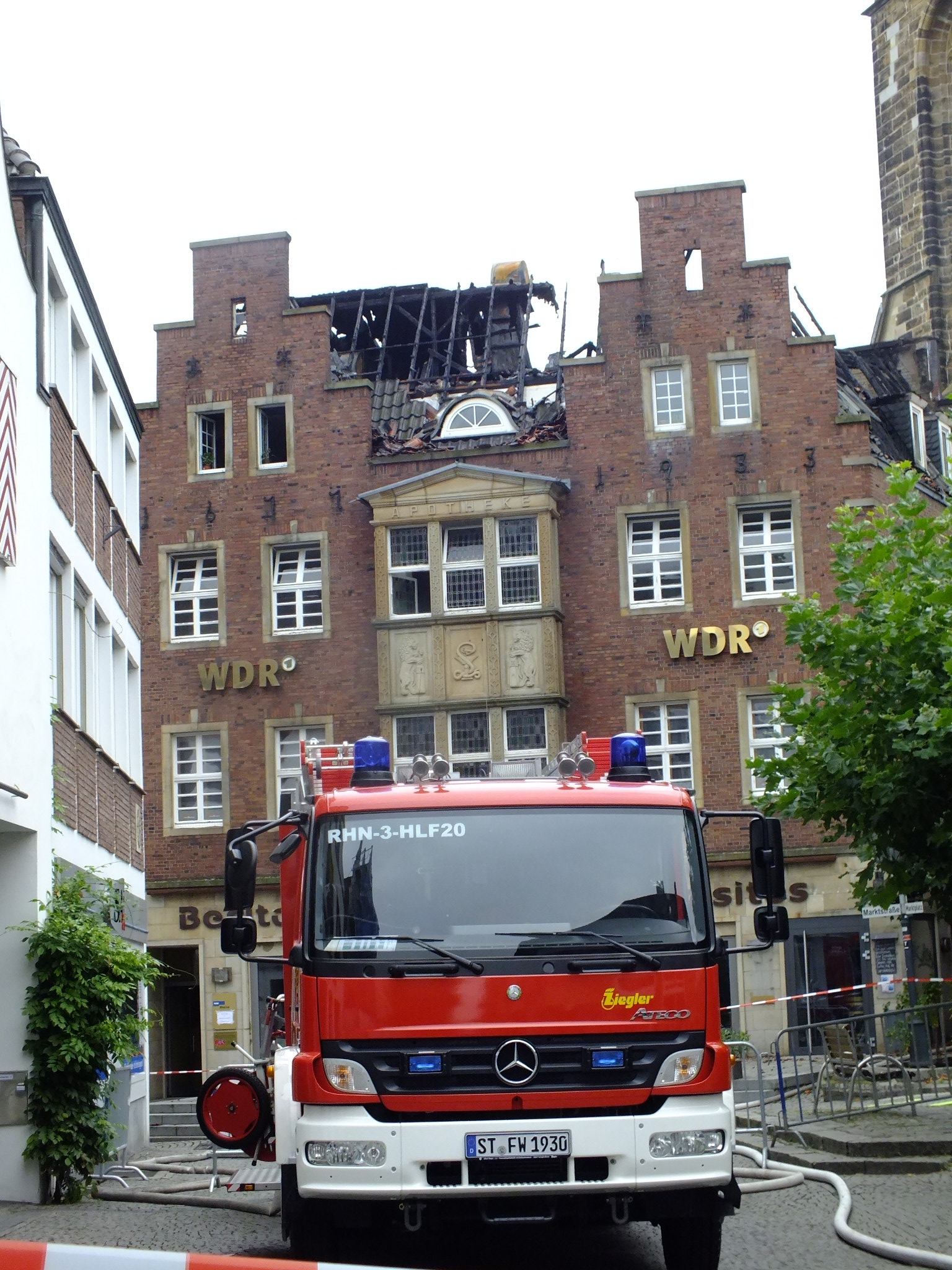 Rheine, 13.09.2014. Brand in der historischen Löwen Apotheke in Rheine