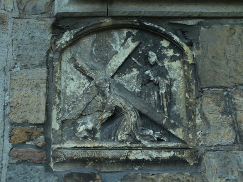 An der Kirche befand sich auch ein Kreuzweg, der aber heute leider kaum noch erkennbar ist. Genauso wie viele Figuren, die sich ebenfalls an Aussenseite der Kirche befanden, verschwunden sind.